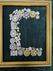 Libby Burger will be help students create a jeweled monogram on fabric to be framed in a 5″x7″ or 8″x10″frame. Students will supply the frame with a removable back and the art center will supply the fabric backing, jewels, and glue.